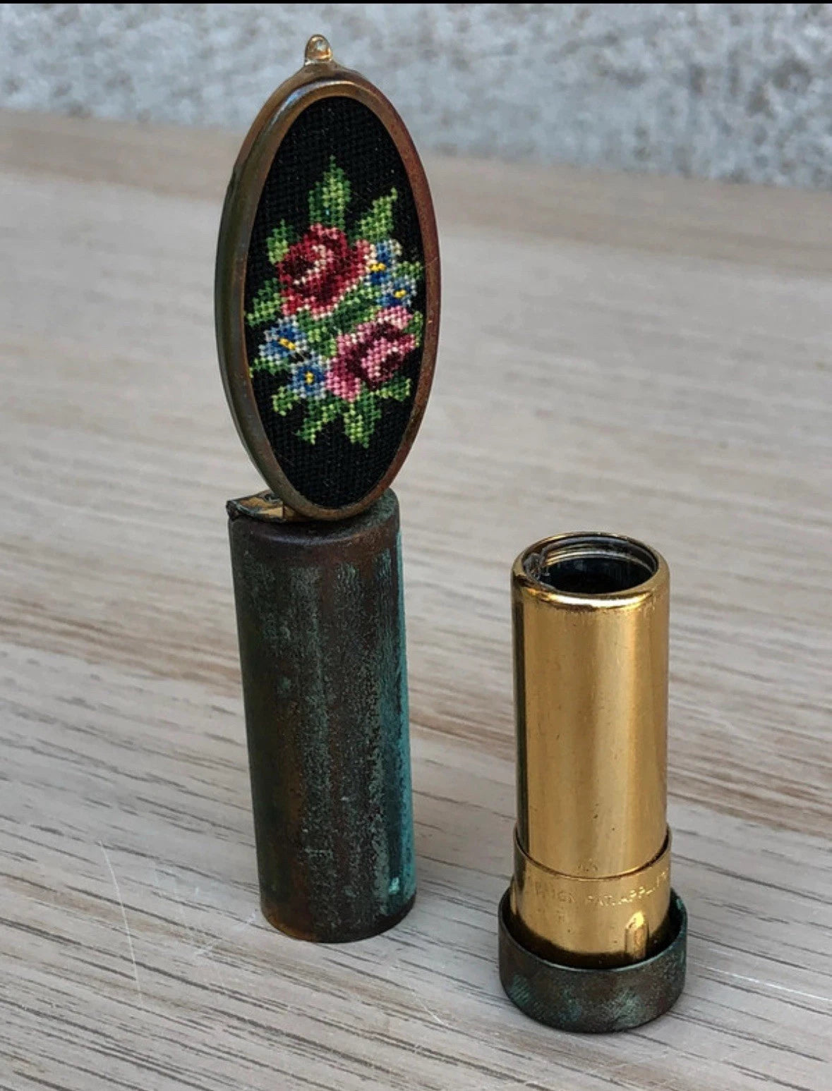 Portarossetto vintage in ottone con specchio interno