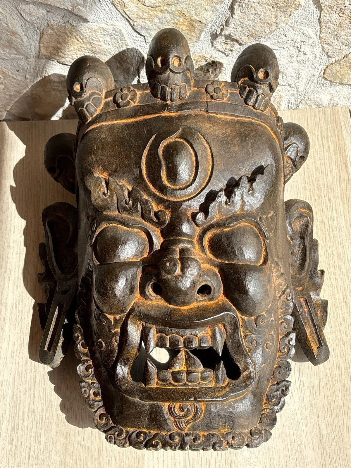 Grande maschera vintage in legno
